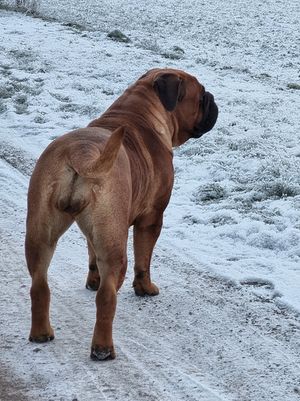 Wurftag 21.10.2021 “ Ralston Bulls Do you really want me Daphne” ist eine Tochter von Gustav und Orsel. Sie ist eine sehr kraftvolle Hündin mit einem sehr ausgeglichenen Wesen. Sie ist 65 cm groß und wiegt 58 kg.